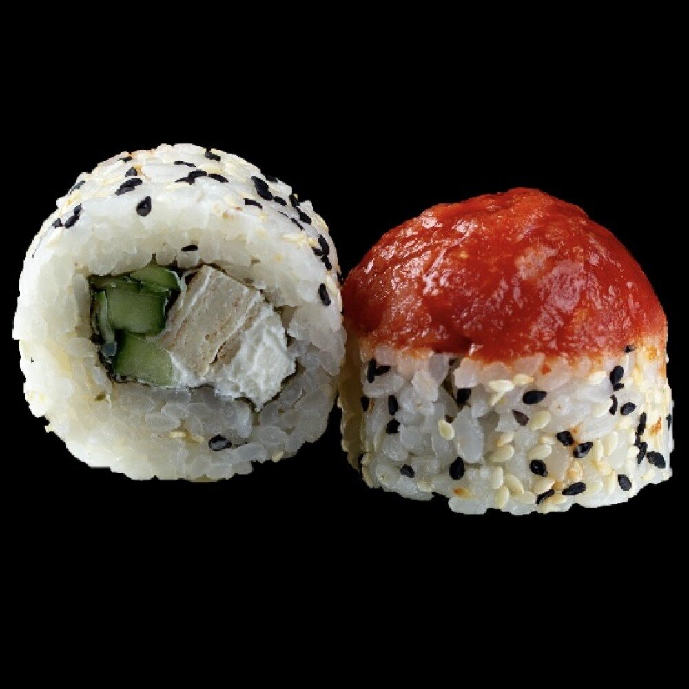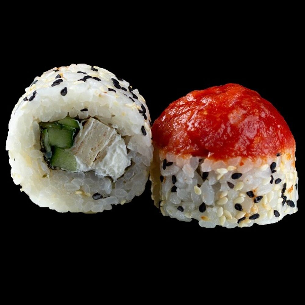 Тунец, креметта, томаго, огурец, кунжут ч/б, соус Шрирача, рис, нори.
