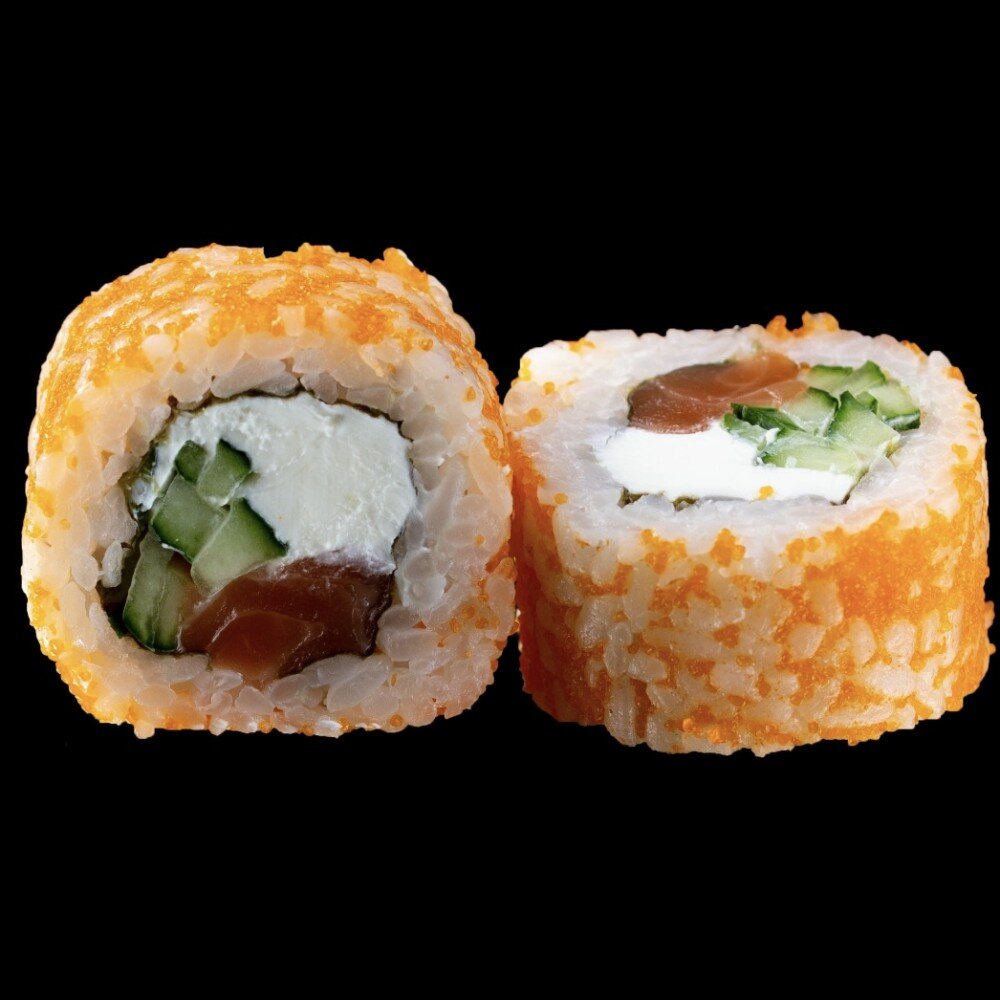 Лосось, сыр креметта, огурец, икра масаго, рис, нори.