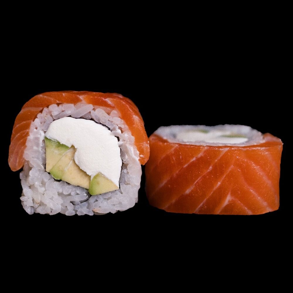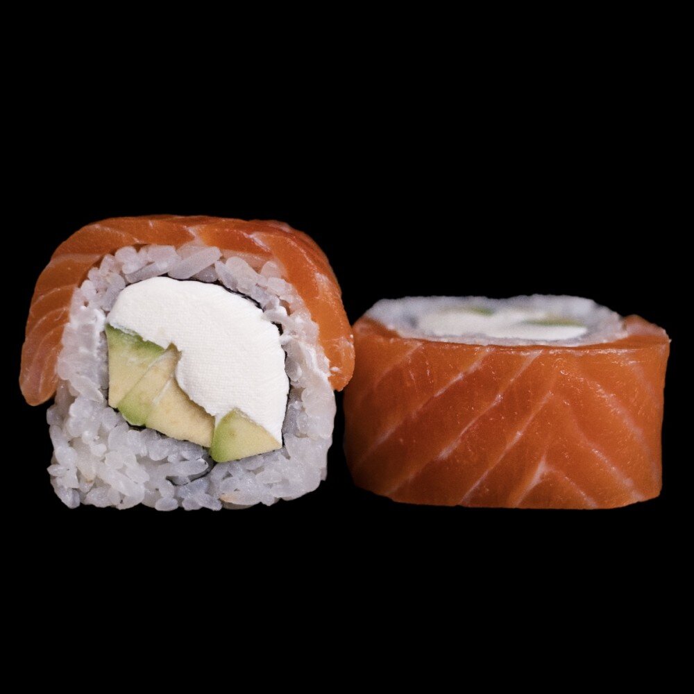 Лосось, авокадо, сыр креметта, рис, нори.