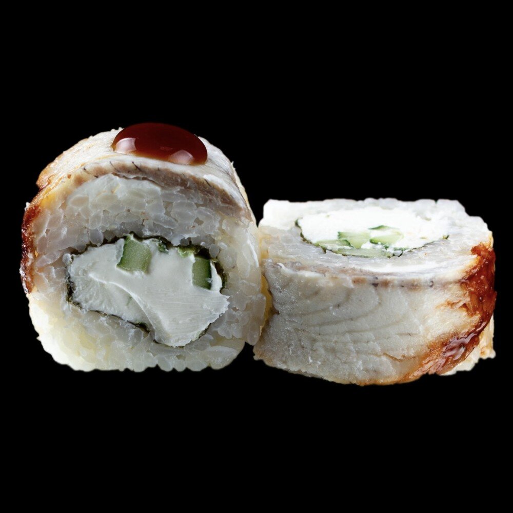 Угорь, сыр креметта, огурец, рис, нори.