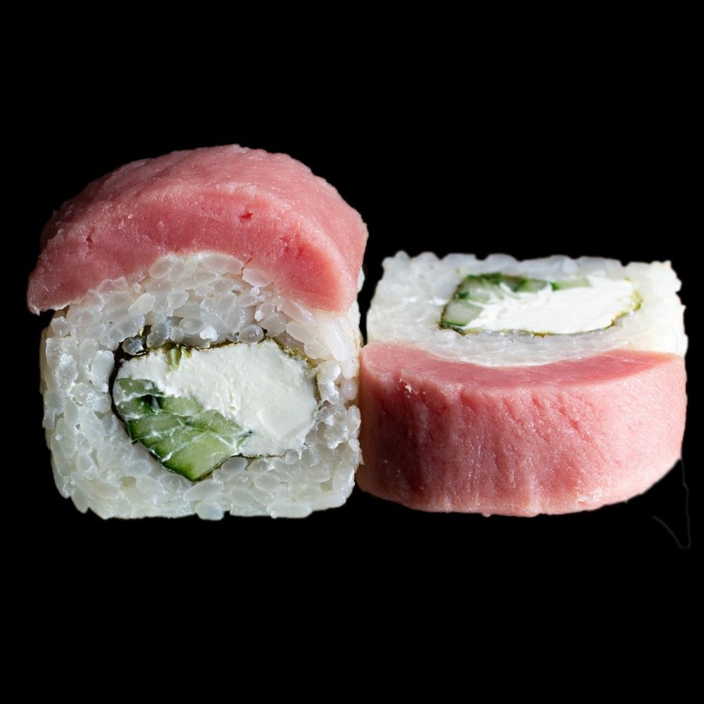 Тунец, сыр креметта, огурец, рис, нори.