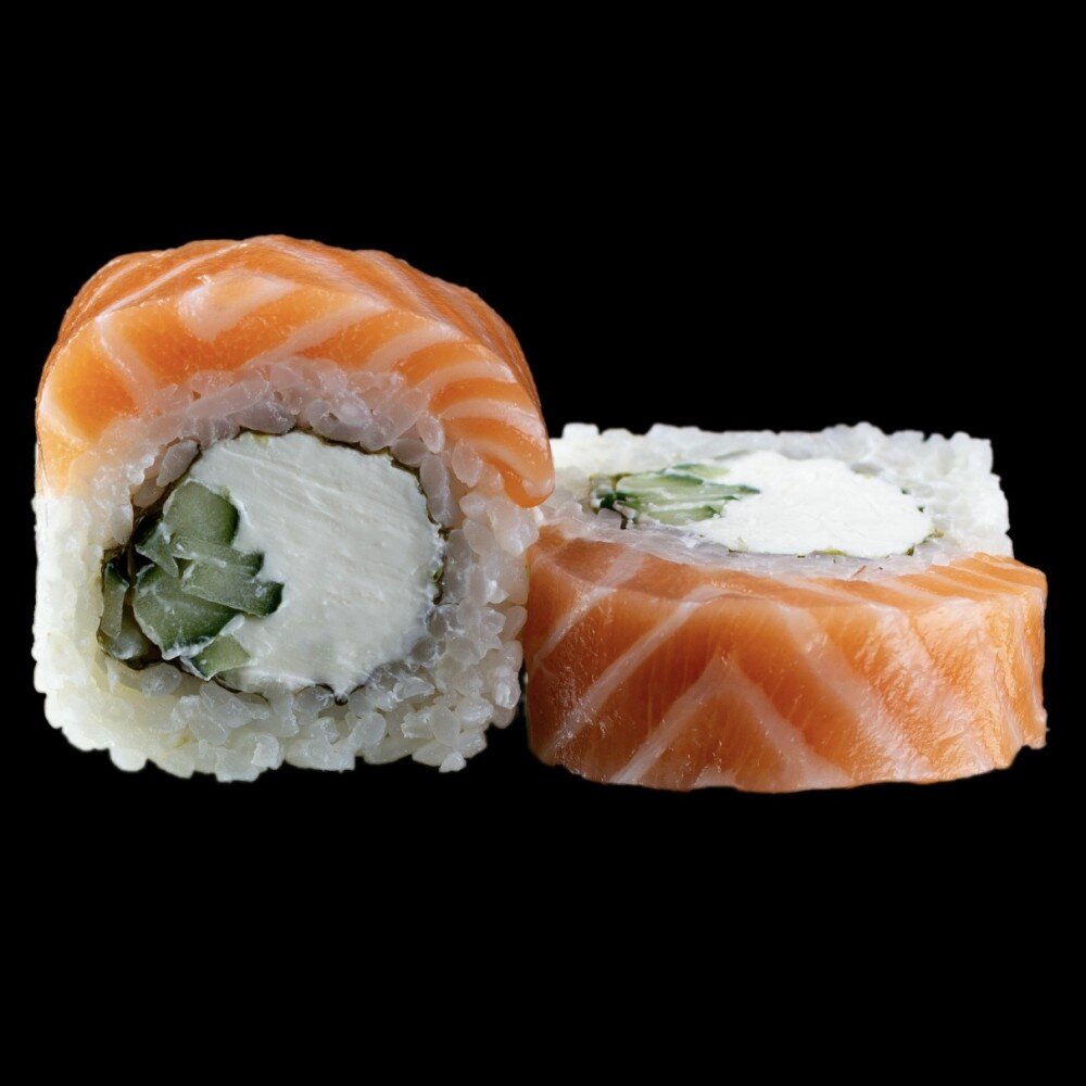 Лосось, сыр креметта, огурец, рис, нори.