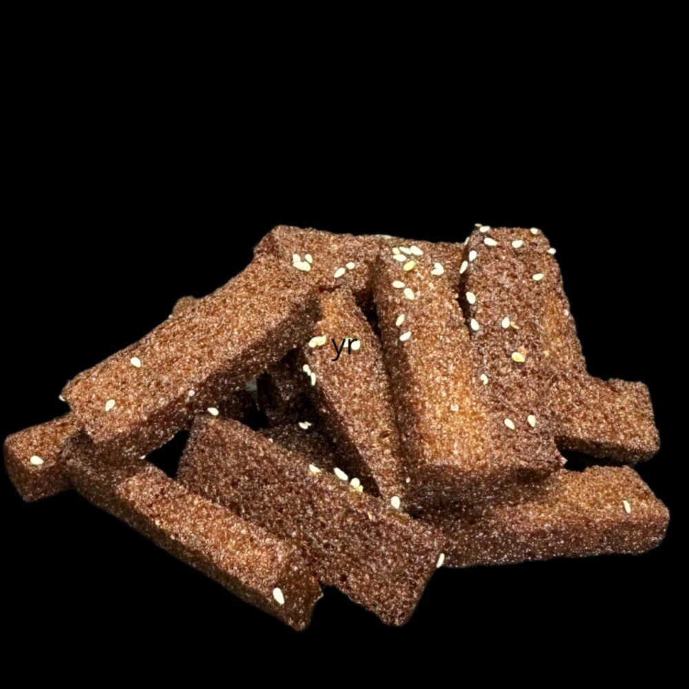Ароматные гренки из чёрного хлебушка, обжаренные на масле.