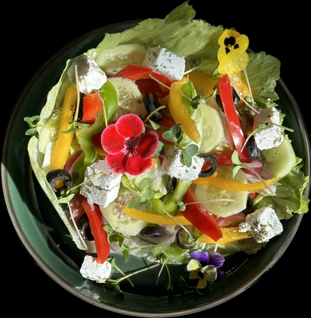 Болг. перец, фета, черри, огурец, ялт. лук, маслины, оливковое масло, прованс. травы
