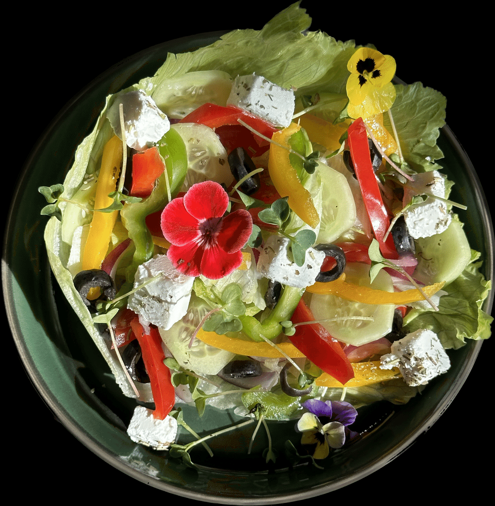Болг. перец, фета, черри, огурец, ялт. лук, маслины, оливковое масло, прованс. травыю