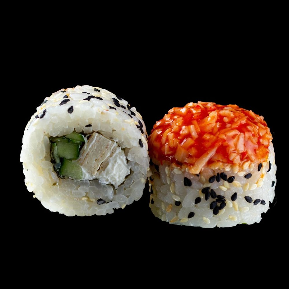 Снежный краб, креметта, томаго, огурец, кунжут ч/б, соус Шрирача, рис, нори