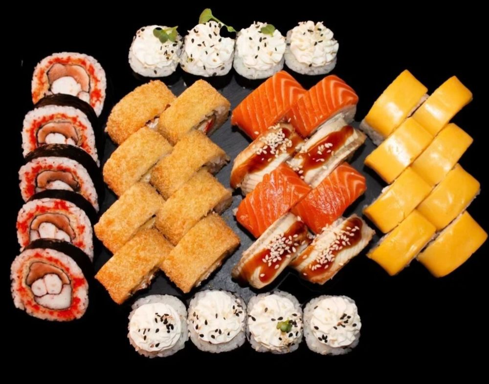 Ролл Биг шеф Филадельфия лосось 0,5 Филадельфия угорь 0,5 Чизори тунец Ролл с креветкой и сливочным сыром Панко креветка
