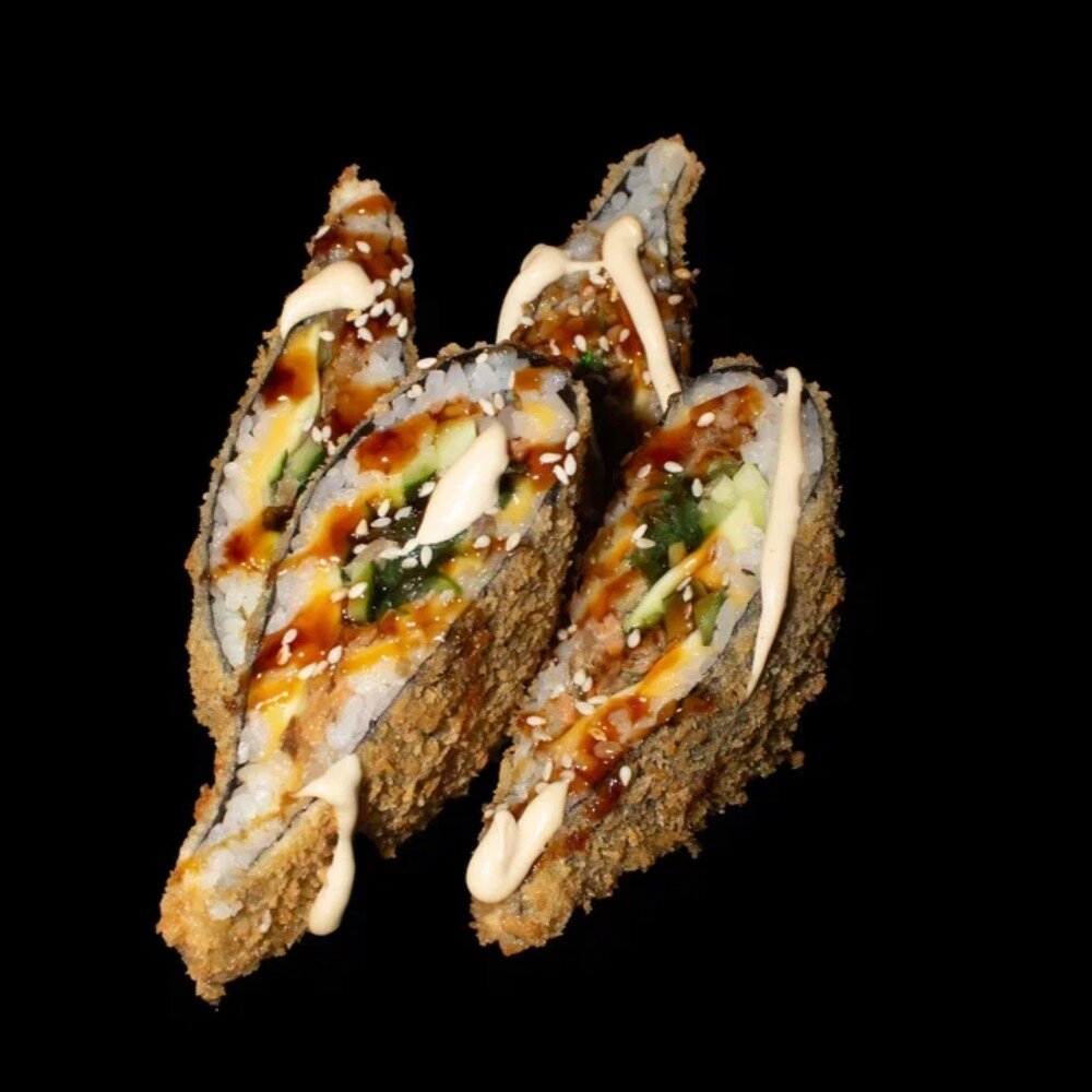 Угорь, чука, сыр чеддер, огурец рис, нори, японский майонез