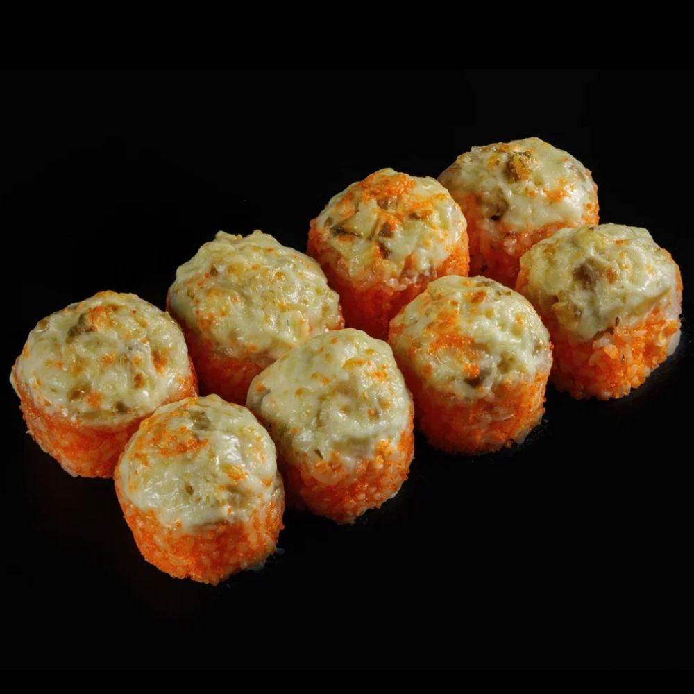 Рапан, сыр креметта, тамаго, сыр моцарелла, икра масаго, рис, нори.