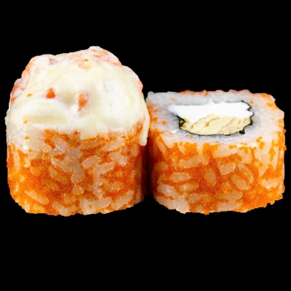 Лосось, сыр креметта, тамаго омлет, икра масаго, японский майонез, сыр моцарелла, рис, нори.