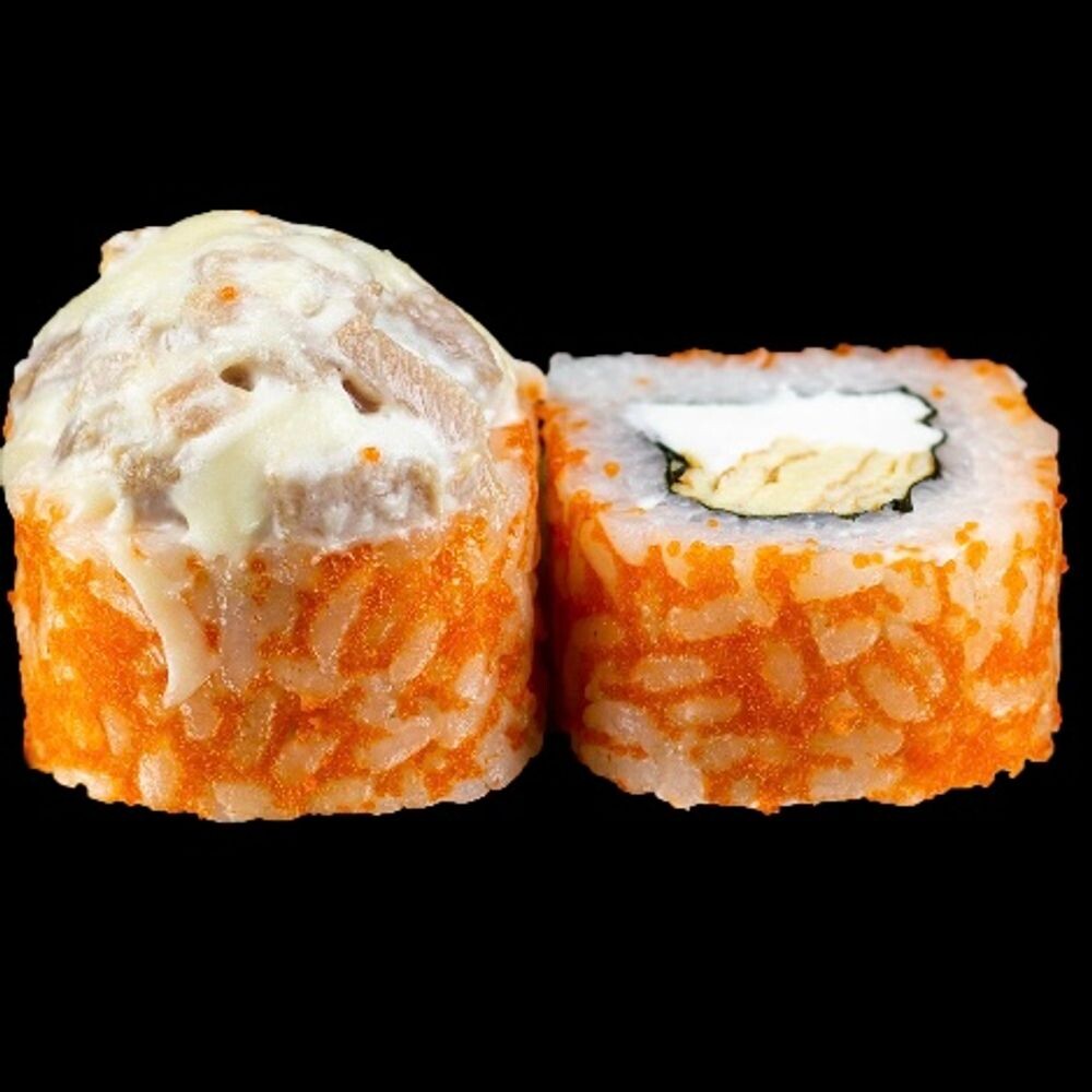 Тунец, сыр креметта, тамаго омлет, икра масаго, японский майонез, сыр моцарелла, рис, нори.
