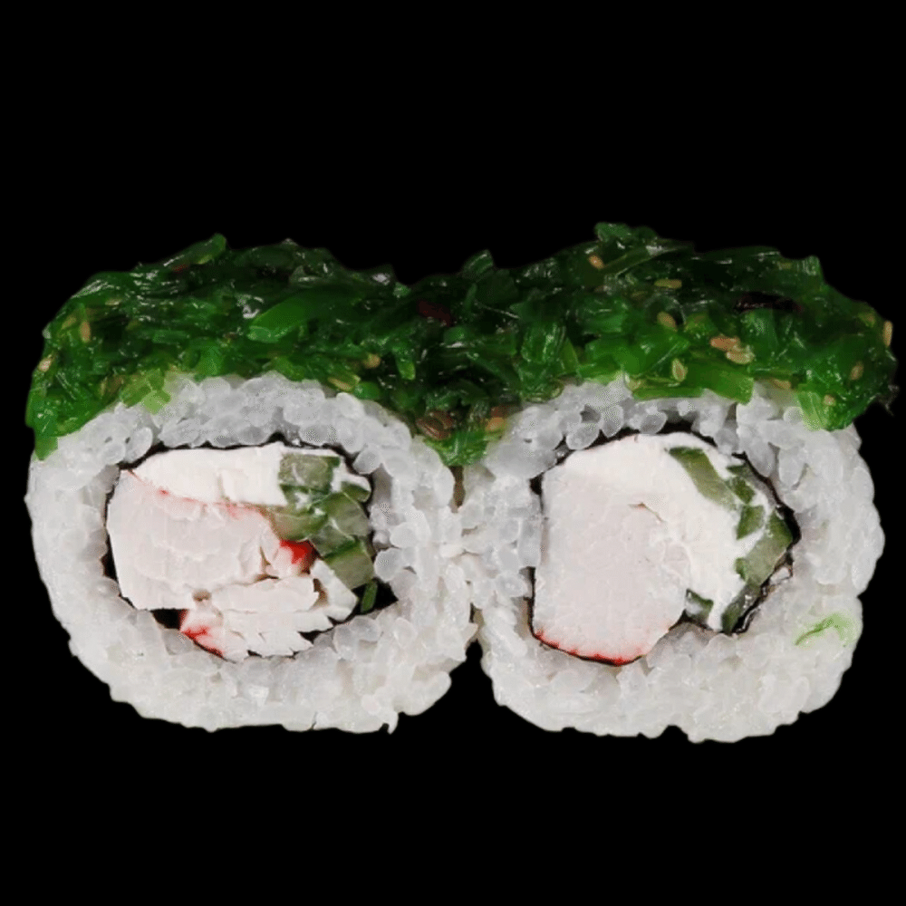 Снежный краб в темпуре, сыр креметта, огурец, чука, рис, нори.