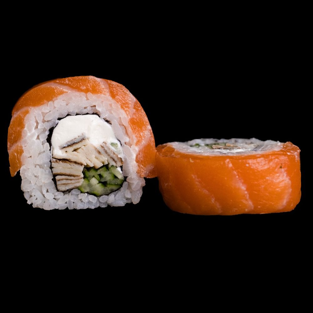 Лосось, сыр креметта, тамаго омлет, огурец, рис, нори.